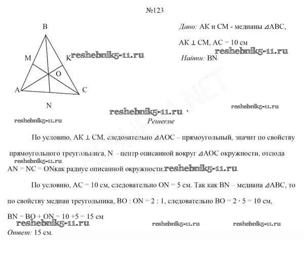 Готовая домашняя работа с ответами по Геометрии за 8 класс Казаков Учебник Народная асвета 2018 - Задачи 123