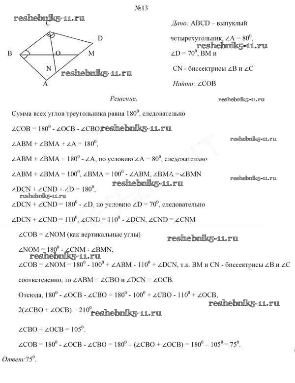 Готовая домашняя работа с ответами по Геометрии за 8 класс Казаков Учебник Народная асвета 2018 - Задачи 13