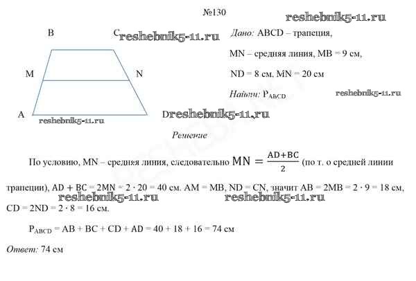 Готовая домашняя работа с ответами по Геометрии за 8 класс Казаков Учебник Народная асвета 2018 - Задачи 130