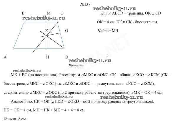 Готовая домашняя работа с ответами по Геометрии за 8 класс Казаков Учебник Народная асвета 2018 - Задачи 137