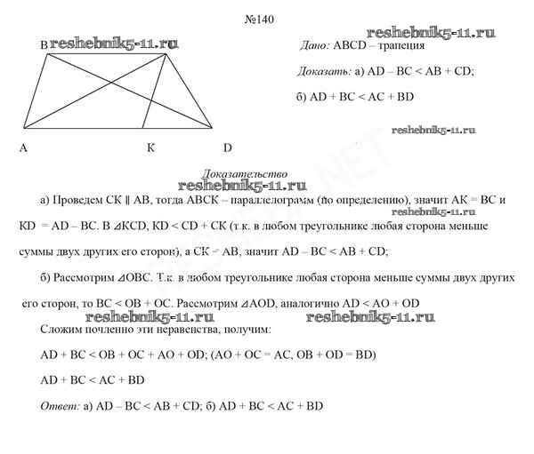Готовая домашняя работа с ответами по Геометрии за 8 класс Казаков Учебник Народная асвета 2018 - Задачи 140