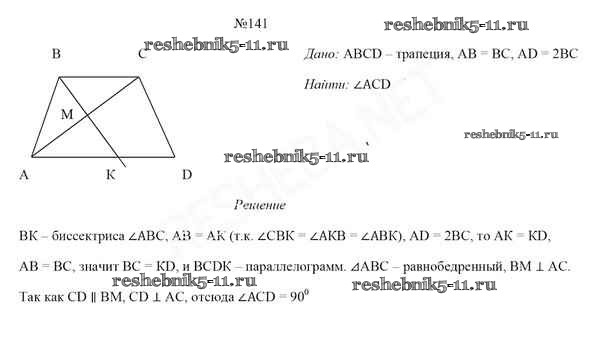Готовая домашняя работа с ответами по Геометрии за 8 класс Казаков Учебник Народная асвета 2018 - Задачи 141