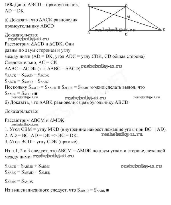 Готовая домашняя работа с ответами по Геометрии за 8 класс Казаков Учебник Народная асвета 2018 - Задачи 158