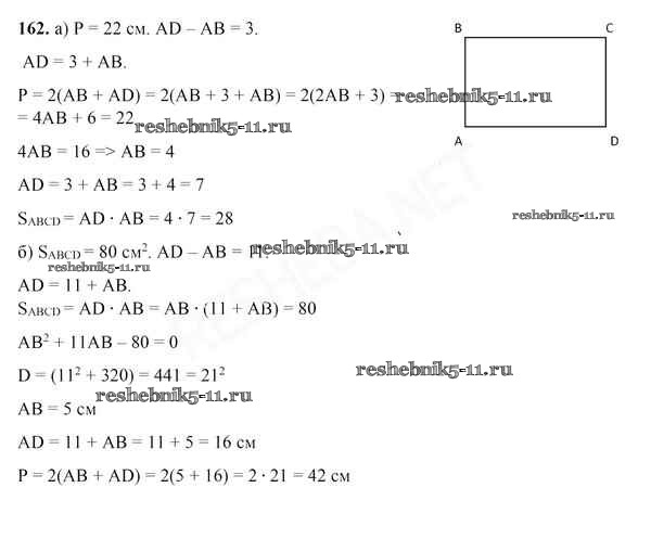 Готовая домашняя работа с ответами по Геометрии за 8 класс Казаков Учебник Народная асвета 2018 - Задачи 162
