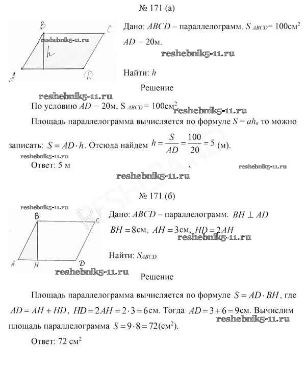 Готовая домашняя работа с ответами по Геометрии за 8 класс Казаков Учебник Народная асвета 2018 - Задачи 171