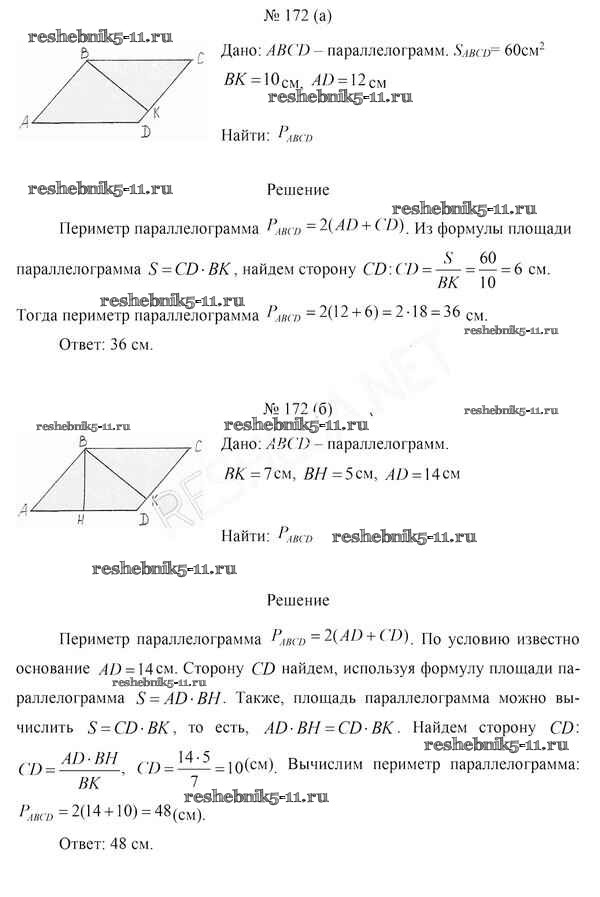 Готовая домашняя работа с ответами по Геометрии за 8 класс Казаков Учебник Народная асвета 2018 - Задачи 172