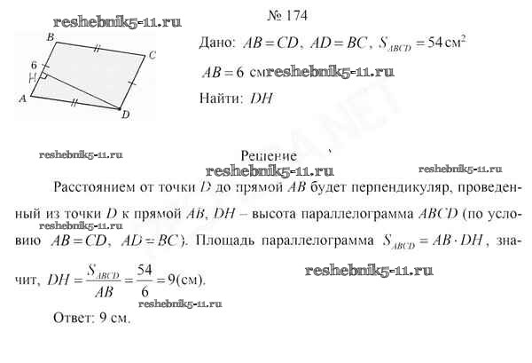 Готовая домашняя работа с ответами по Геометрии за 8 класс Казаков Учебник Народная асвета 2018 - Задачи 174