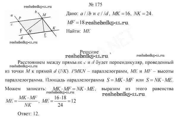Готовая домашняя работа с ответами по Геометрии за 8 класс Казаков Учебник Народная асвета 2018 - Задачи 175