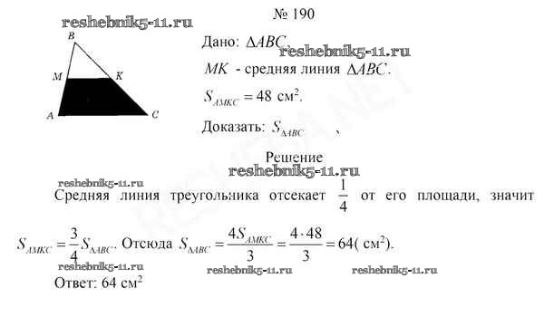 Готовая домашняя работа с ответами по Геометрии за 8 класс Казаков Учебник Народная асвета 2018 - Задачи 190