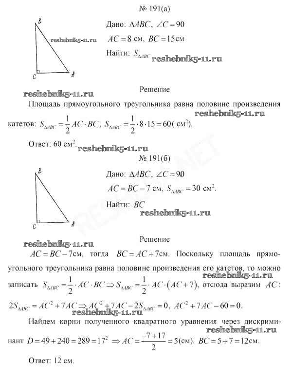 Готовая домашняя работа с ответами по Геометрии за 8 класс Казаков Учебник Народная асвета 2018 - Задачи 191