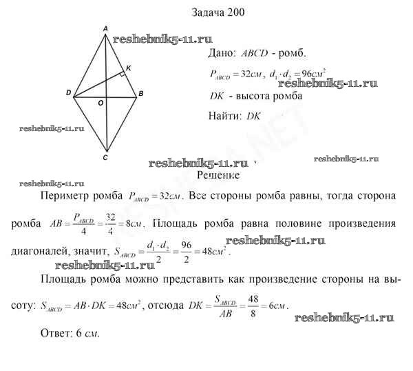 Готовая домашняя работа с ответами по Геометрии за 8 класс Казаков Учебник Народная асвета 2018 - Задачи 200