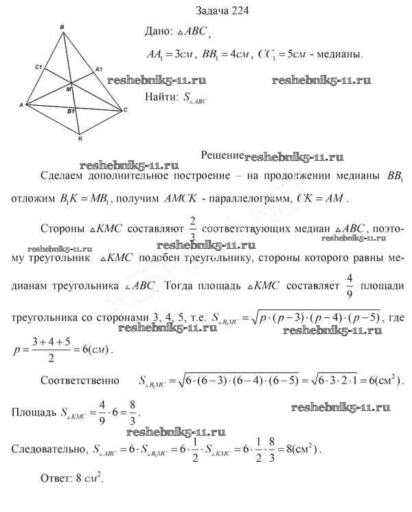 Готовая домашняя работа с ответами по Геометрии за 8 класс Казаков Учебник Народная асвета 2018 - Задачи 224