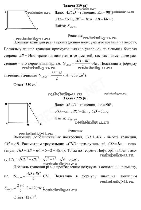 Готовая домашняя работа с ответами по Геометрии за 8 класс Казаков Учебник Народная асвета 2018 - Задачи 229