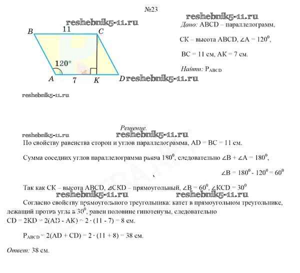 Готовая домашняя работа с ответами по Геометрии за 8 класс Казаков Учебник Народная асвета 2018 - Задачи 23