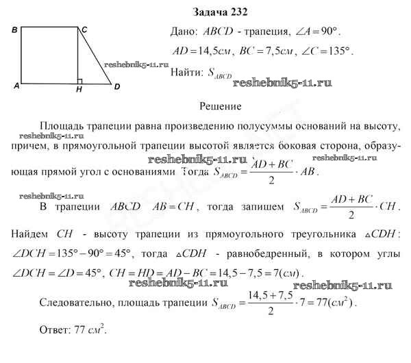 Готовая домашняя работа с ответами по Геометрии за 8 класс Казаков Учебник Народная асвета 2018 - Задачи 232