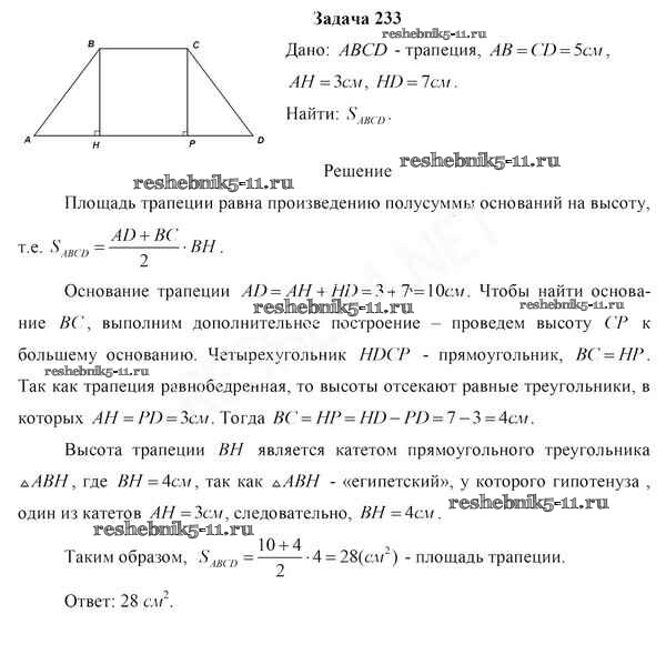 Готовая домашняя работа с ответами по Геометрии за 8 класс Казаков Учебник Народная асвета 2018 - Задачи 233
