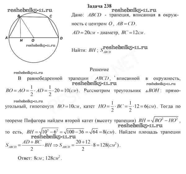 Готовая домашняя работа с ответами по Геометрии за 8 класс Казаков Учебник Народная асвета 2018 - Задачи 238