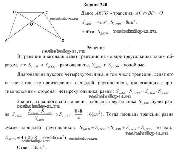 Готовая домашняя работа с ответами по Геометрии за 8 класс Казаков Учебник Народная асвета 2018 - Задачи 240