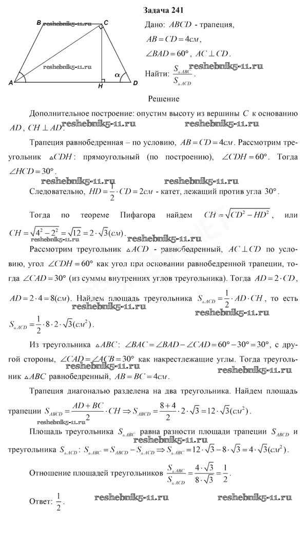 Готовая домашняя работа с ответами по Геометрии за 8 класс Казаков Учебник Народная асвета 2018 - Задачи 241