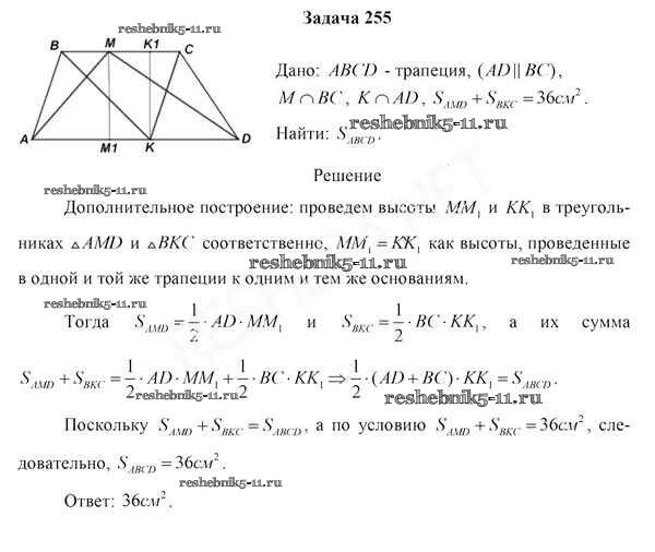 Готовая домашняя работа с ответами по Геометрии за 8 класс Казаков Учебник Народная асвета 2018 - Задачи 255