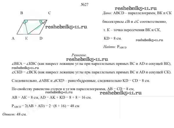 Готовая домашняя работа с ответами по Геометрии за 8 класс Казаков Учебник Народная асвета 2018 - Задачи 27