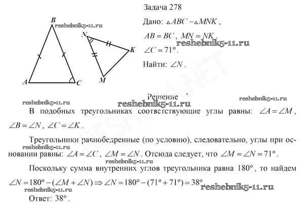 Готовая домашняя работа с ответами по Геометрии за 8 класс Казаков Учебник Народная асвета 2018 - Задачи 278