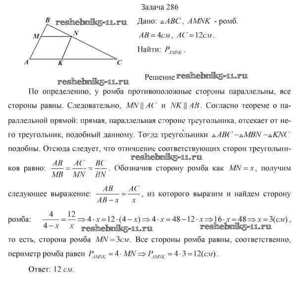Готовая домашняя работа с ответами по Геометрии за 8 класс Казаков Учебник Народная асвета 2018 - Задачи 286
