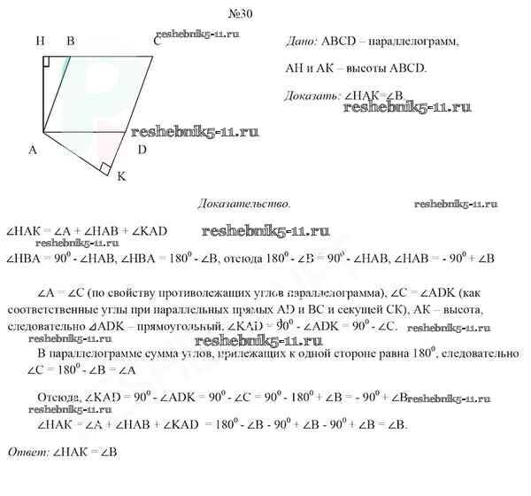 Готовая домашняя работа с ответами по Геометрии за 8 класс Казаков Учебник Народная асвета 2018 - Задачи 30
