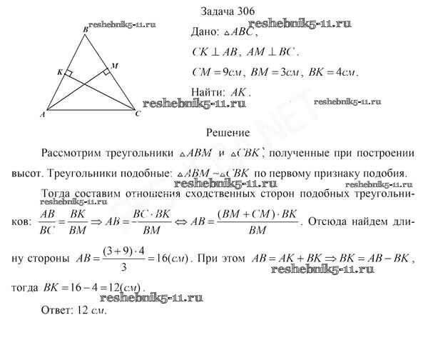 Готовая домашняя работа с ответами по Геометрии за 8 класс Казаков Учебник Народная асвета 2018 - Задачи 306