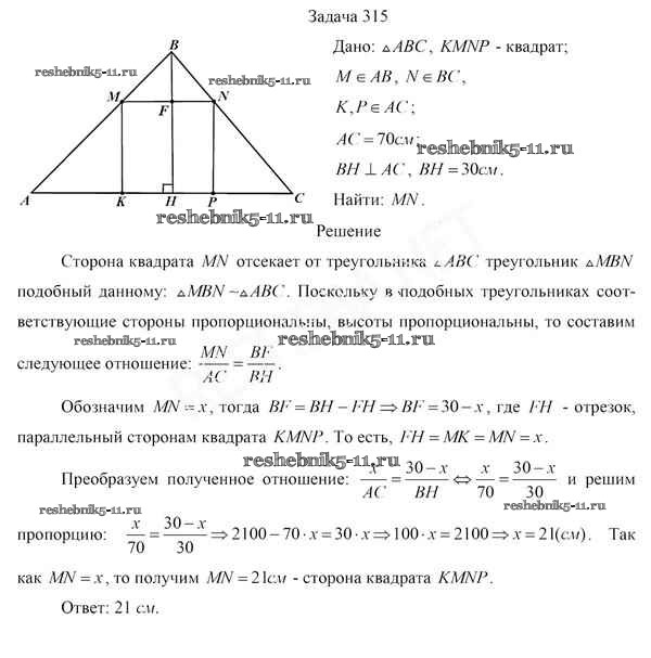 Готовая домашняя работа с ответами по Геометрии за 8 класс Казаков Учебник Народная асвета 2018 - Задачи 315