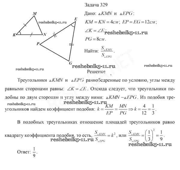 Готовая домашняя работа с ответами по Геометрии за 8 класс Казаков Учебник Народная асвета 2018 - Задачи 329