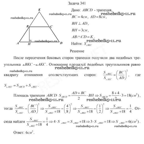Готовая домашняя работа с ответами по Геометрии за 8 класс Казаков Учебник Народная асвета 2018 - Задачи 341