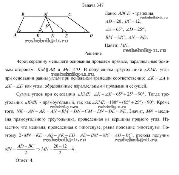 Готовая домашняя работа с ответами по Геометрии за 8 класс Казаков Учебник Народная асвета 2018 - Задачи 347
