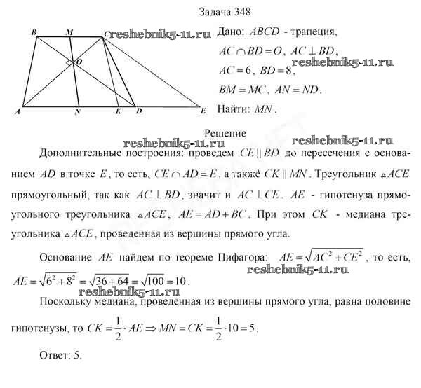 Готовая домашняя работа с ответами по Геометрии за 8 класс Казаков Учебник Народная асвета 2018 - Задачи 348