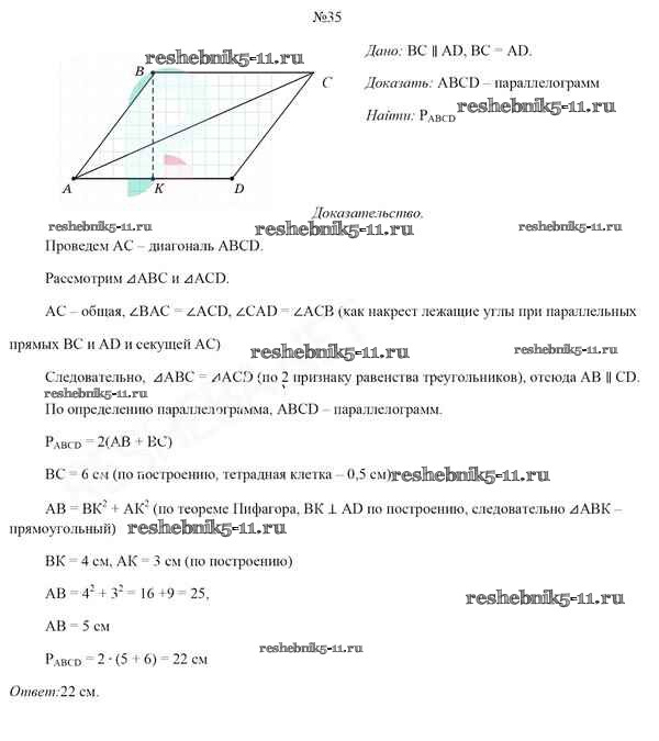 Готовая домашняя работа с ответами по Геометрии за 8 класс Казаков Учебник Народная асвета 2018 - Задачи 35