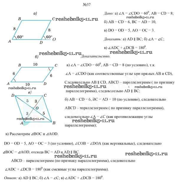 Готовая домашняя работа с ответами по Геометрии за 8 класс Казаков Учебник Народная асвета 2018 - Задачи 37