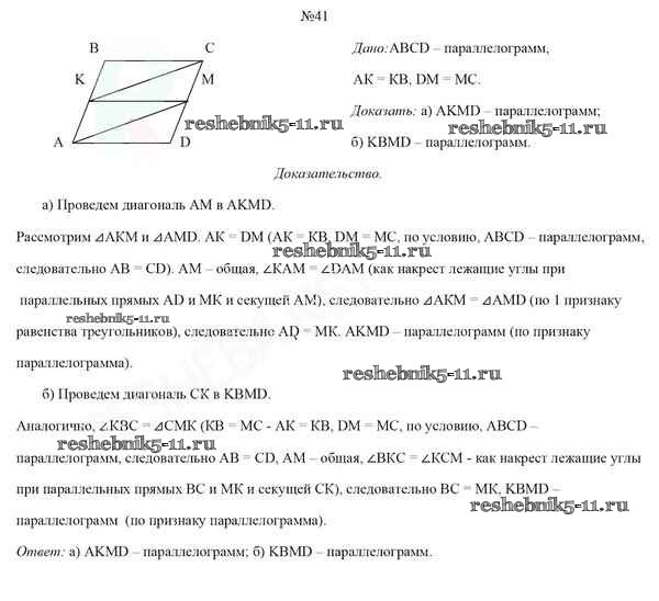 Готовая домашняя работа с ответами по Геометрии за 8 класс Казаков Учебник Народная асвета 2018 - Задачи 41