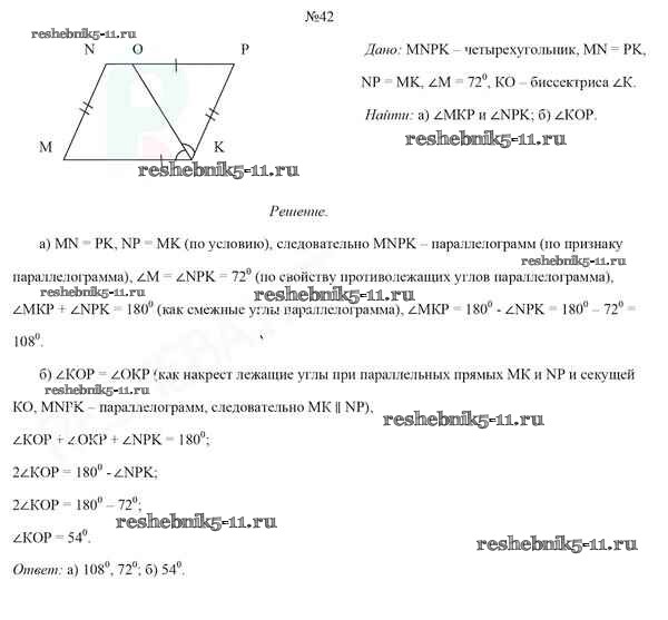 Готовая домашняя работа с ответами по Геометрии за 8 класс Казаков Учебник Народная асвета 2018 - Задачи 42