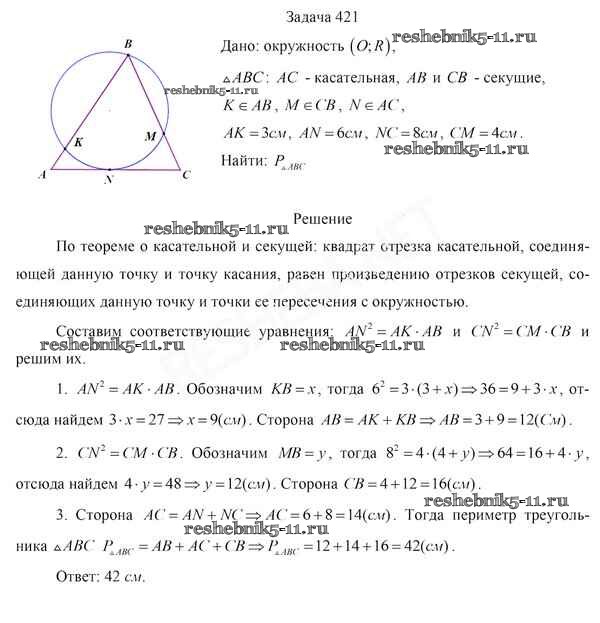Готовая домашняя работа с ответами по Геометрии за 8 класс Казаков Учебник Народная асвета 2018 - Задачи 421