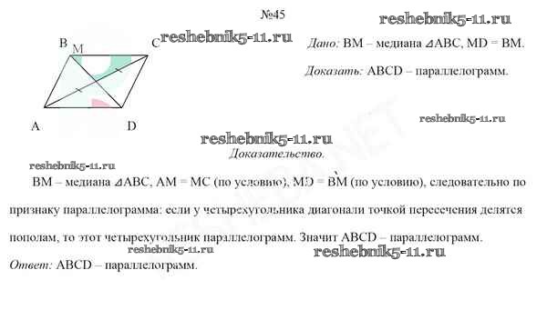 Готовая домашняя работа с ответами по Геометрии за 8 класс Казаков Учебник Народная асвета 2018 - Задачи 45