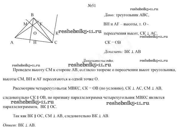 Готовая домашняя работа с ответами по Геометрии за 8 класс Казаков Учебник Народная асвета 2018 - Задачи 51
