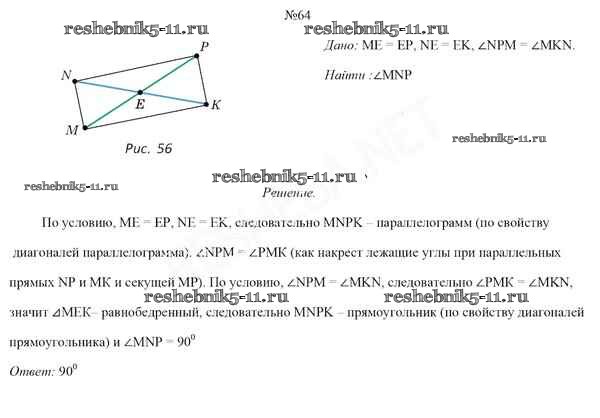 Готовая домашняя работа с ответами по Геометрии за 8 класс Казаков Учебник Народная асвета 2018 - Задачи 64