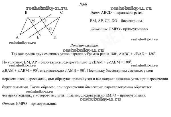 Готовая домашняя работа с ответами по Геометрии за 8 класс Казаков Учебник Народная асвета 2018 - Задачи 66