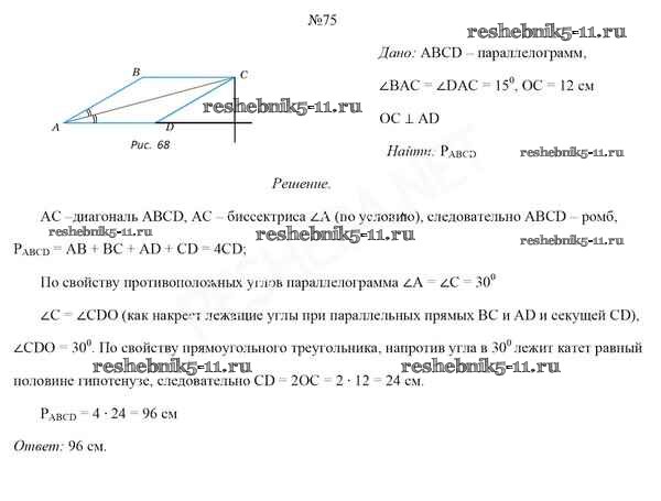 Готовая домашняя работа с ответами по Геометрии за 8 класс Казаков Учебник Народная асвета 2018 - Задачи 75