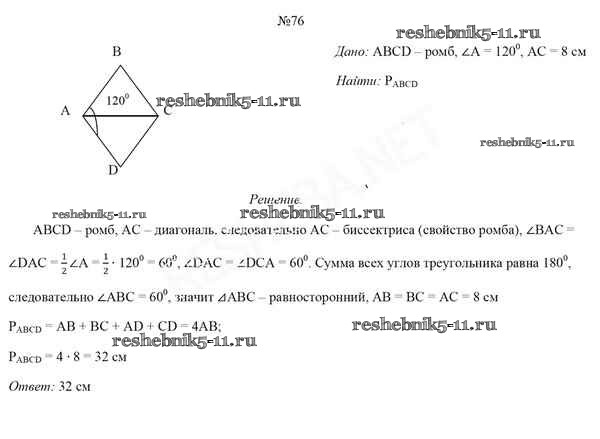 Готовая домашняя работа с ответами по Геометрии за 8 класс Казаков Учебник Народная асвета 2018 - Задачи 76