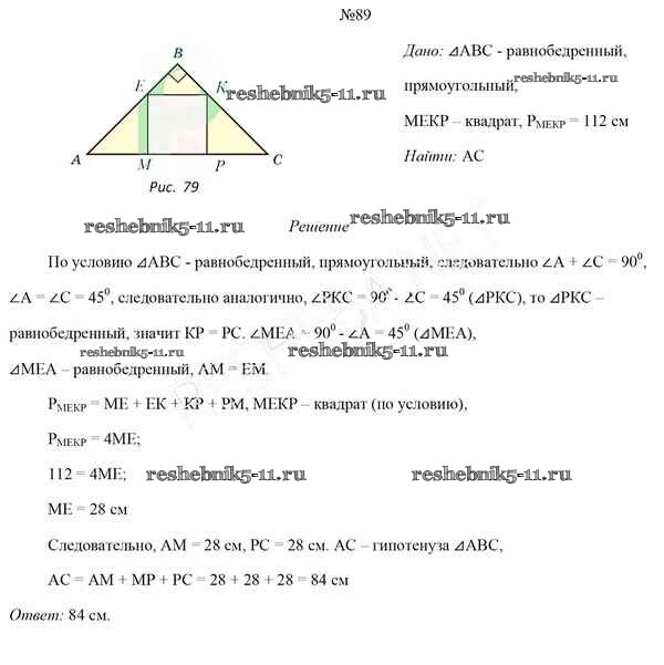 Готовая домашняя работа с ответами по Геометрии за 8 класс Казаков Учебник Народная асвета 2018 - Задачи 89