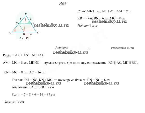Готовая домашняя работа с ответами по Геометрии за 8 класс Казаков Учебник Народная асвета 2018 - Задачи 99