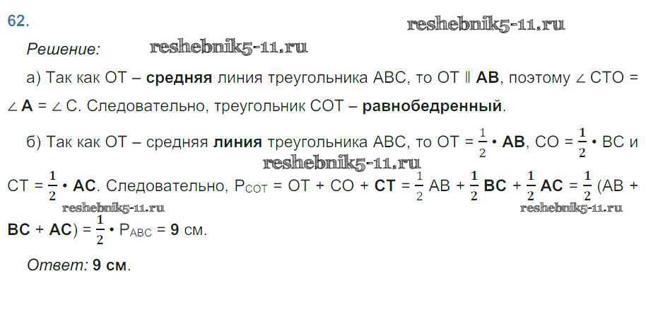 Готовая домашняя работа с ответами по Геометрии за 8 класс Атанасян, Бутузов, Глазков, Юдина Рабочая тетрадь Просвещение 2019 ФГОС - Задачи 62