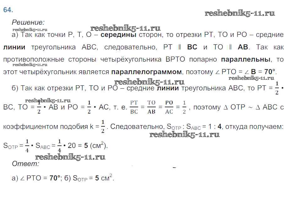 Готовая домашняя работа с ответами по Геометрии за 8 класс Атанасян, Бутузов, Глазков, Юдина Рабочая тетрадь Просвещение 2019 ФГОС - Задачи 64