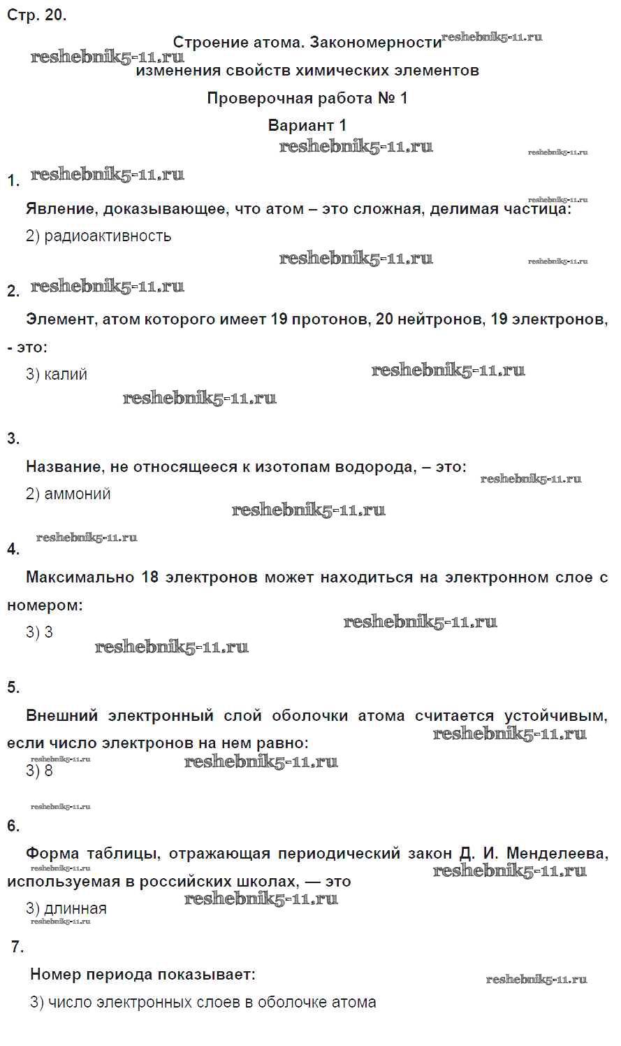 Готовая домашняя работа с ответами по Химии за 8 класс Бобылева, Бирюлина, Дмитриева, Тараканова Тетрадь-экзаменатор Сферы Просвещение 2016 ФГОС - Страницы 20